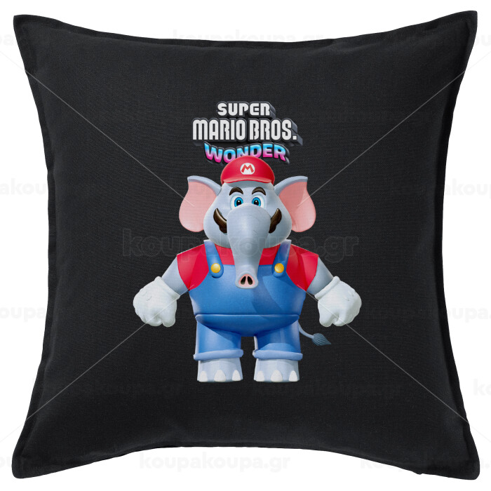 Super mario wonder, Μαξιλάρι καναπέ Μαύρο 100% βαμβάκι, περιέχεται το γέμισμα (50x50cm)