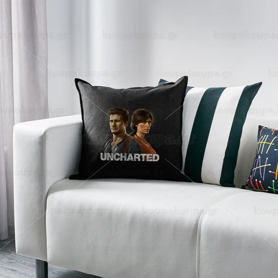 Uncharted, Μαξιλάρι καναπέ Μαύρο 100% βαμβάκι, περιέχεται το γέμισμα (50x50cm)