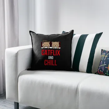 Catflix and Chill, Μαξιλάρι καναπέ Μαύρο 100% βαμβάκι, περιέχεται το γέμισμα (50x50cm)