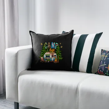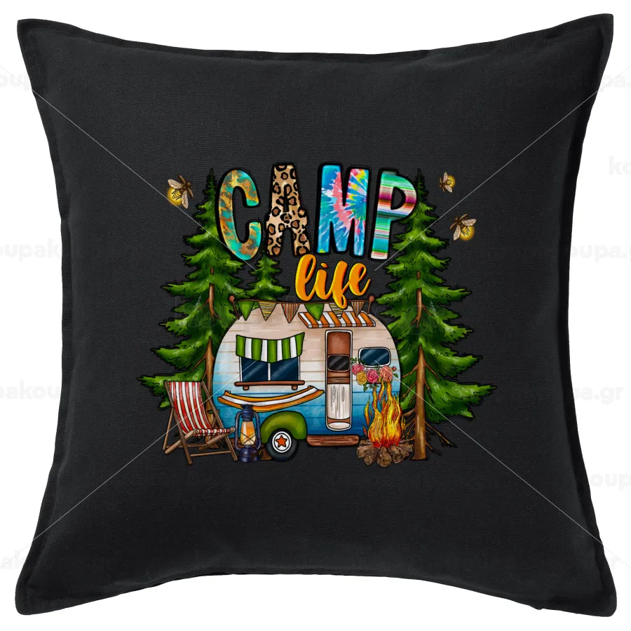 Camp Life, Μαξιλάρι καναπέ Μαύρο 100% βαμβάκι, περιέχεται το γέμισμα (50x50cm)