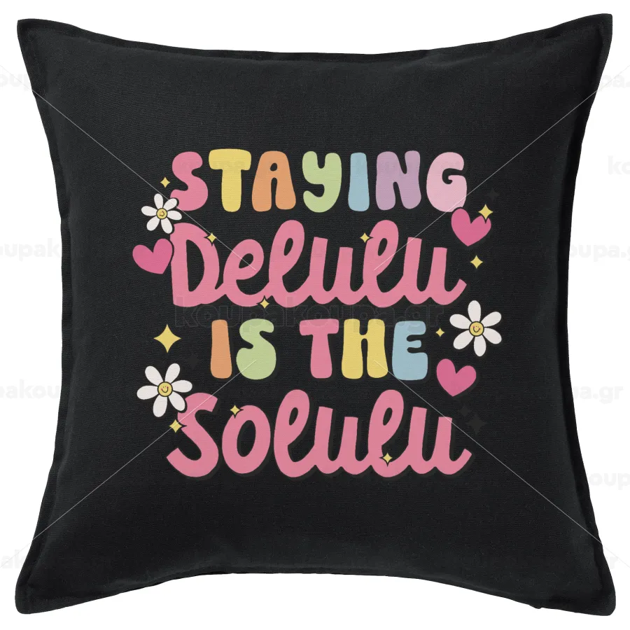 Delulu, Μαξιλάρι καναπέ Μαύρο 100% βαμβάκι, περιέχεται το γέμισμα (50x50cm)