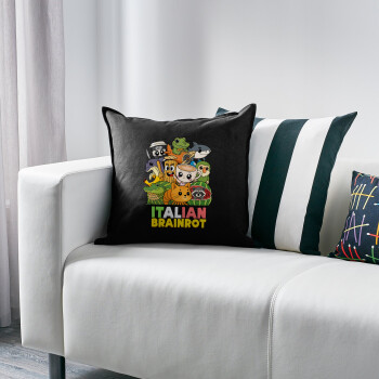 Italian Brainrot friends, Μαξιλάρι καναπέ Μαύρο 100% βαμβάκι, περιέχεται το γέμισμα (50x50cm)
