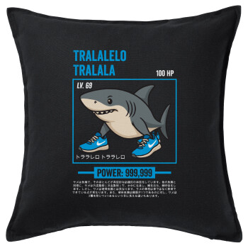 Tralalero Tralala, Μαξιλάρι καναπέ Μαύρο 100% βαμβάκι, περιέχεται το γέμισμα (50x50cm)