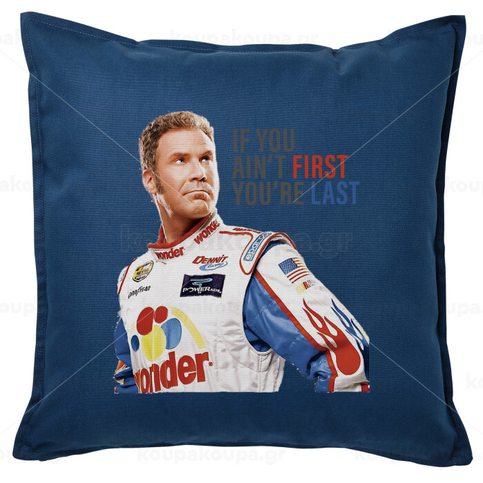 If You Ain't First You're Last Ricky Bobby, Talladega Nights, Μαξιλάρι καναπέ Μπλε 100% βαμβάκι, περιέχεται το γέμισμα (50x50cm)