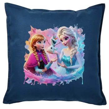 Έλσα & Άννα, Μαξιλάρι καναπέ Μπλε 100% βαμβάκι, περιέχεται το γέμισμα (50x50cm)
