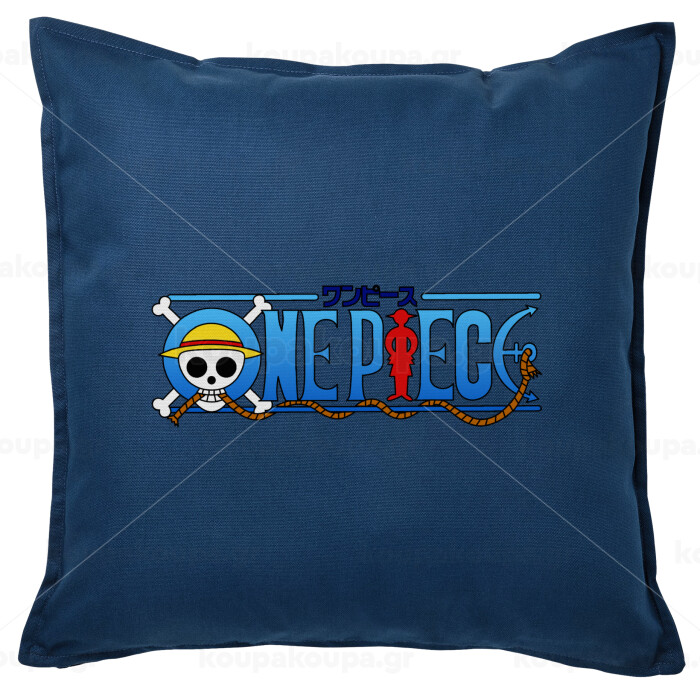 Onepiece logo, Μαξιλάρι καναπέ Μπλε 100% βαμβάκι, περιέχεται το γέμισμα (50x50cm)