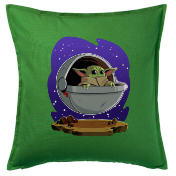 Baby Yoda mandalorian, Μαξιλάρι καναπέ Πράσινο 100% βαμβάκι, περιέχεται το γέμισμα (50x50cm)
