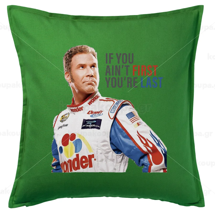 If You Ain't First You're Last Ricky Bobby, Talladega Nights, Μαξιλάρι καναπέ Πράσινο 100% βαμβάκι, περιέχεται το γέμισμα (50x50cm)