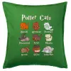 Potter Cats, Μαξιλάρι καναπέ Πράσινο 100% βαμβάκι, περιέχεται το γέμισμα (50x50cm)