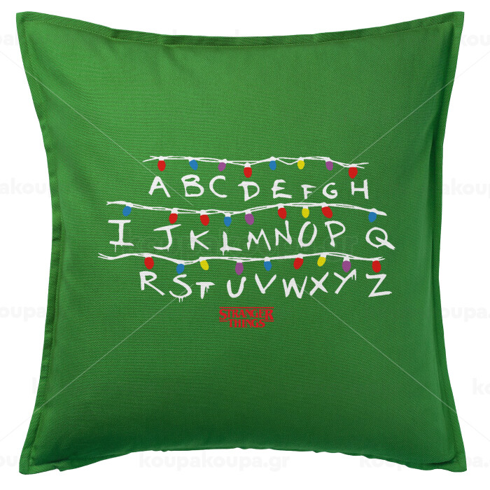 Stranger Things ABC, Μαξιλάρι καναπέ Πράσινο 100% βαμβάκι, περιέχεται το γέμισμα (50x50cm)