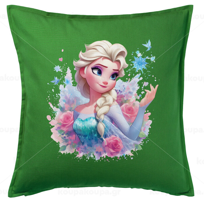 Elsa Princess, Μαξιλάρι καναπέ Πράσινο 100% βαμβάκι, περιέχεται το γέμισμα (50x50cm)
