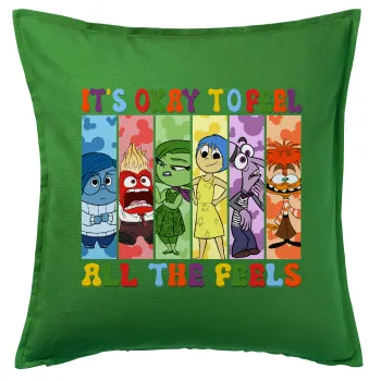 Inside Out It's Okay To Feel All The Feels , Μαξιλάρι καναπέ Πράσινο 100% βαμβάκι, περιέχεται το γέμισμα (50x50cm)