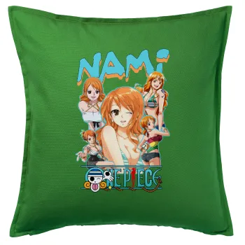 Nami One Piece, Μαξιλάρι καναπέ Πράσινο 100% βαμβάκι, περιέχεται το γέμισμα (50x50cm)