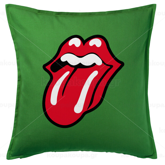 Rolling Stones Kiss, Μαξιλάρι καναπέ Πράσινο 100% βαμβάκι, περιέχεται το γέμισμα (50x50cm)