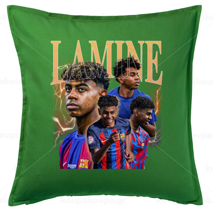 lamine yamal FCB, Μαξιλάρι καναπέ Πράσινο 100% βαμβάκι, περιέχεται το γέμισμα (50x50cm)
