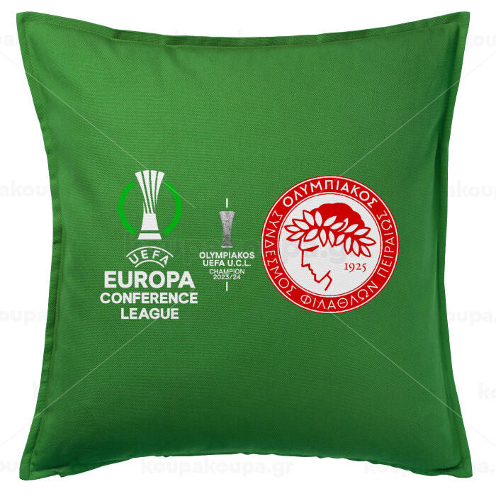 Ολυμπιακός νικητής UEFA Europa Conference League Champion 2023/24, Μαξιλάρι καναπέ Πράσινο 100% βαμβάκι, περιέχεται το γέμισμα (50x50cm)