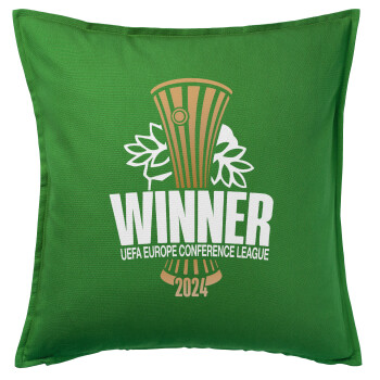 Europa Conference League WINNER, Μαξιλάρι καναπέ Πράσινο 100% βαμβάκι, περιέχεται το γέμισμα (50x50cm)