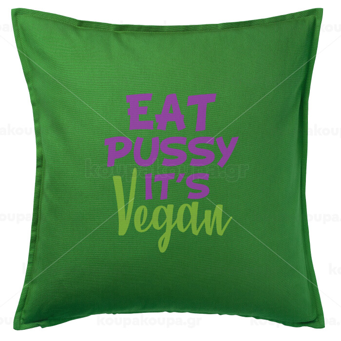 EAT pussy it's vegan, Μαξιλάρι καναπέ Πράσινο 100% βαμβάκι, περιέχεται το γέμισμα (50x50cm)