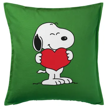 Snoopy takemy heart, Μαξιλάρι καναπέ Πράσινο 100% βαμβάκι, περιέχεται το γέμισμα (50x50cm)