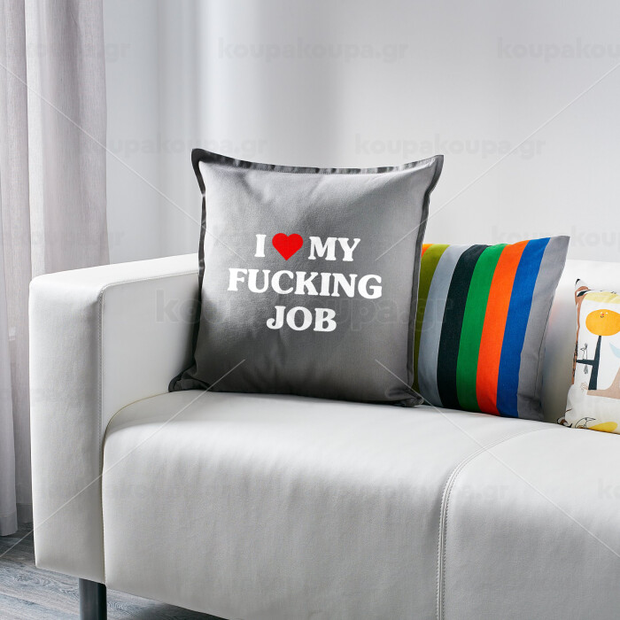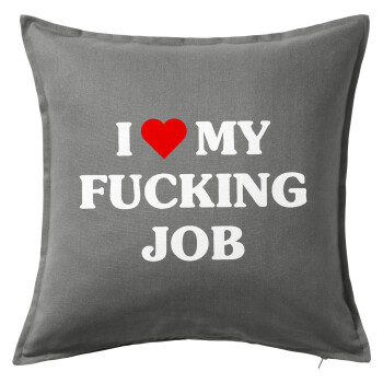 I love my fucking job, Μαξιλάρι καναπέ Γκρι 100% βαμβάκι, περιέχεται το γέμισμα (50x50cm)