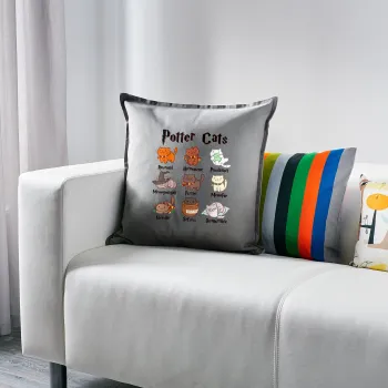 Potter Cats, Μαξιλάρι καναπέ Γκρι 100% βαμβάκι, περιέχεται το γέμισμα (50x50cm)