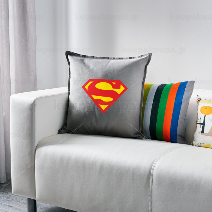 Superman, Μαξιλάρι καναπέ Γκρι 100% βαμβάκι, περιέχεται το γέμισμα (50x50cm)