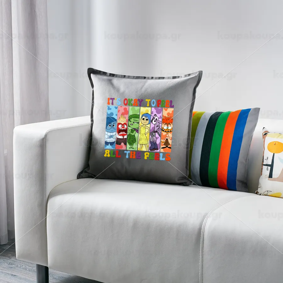 Inside Out It's Okay To Feel All The Feels , Μαξιλάρι καναπέ Γκρι 100% βαμβάκι, περιέχεται το γέμισμα (50x50cm)