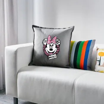 Minnie mouse, Μαξιλάρι καναπέ Γκρι 100% βαμβάκι, περιέχεται το γέμισμα (50x50cm)