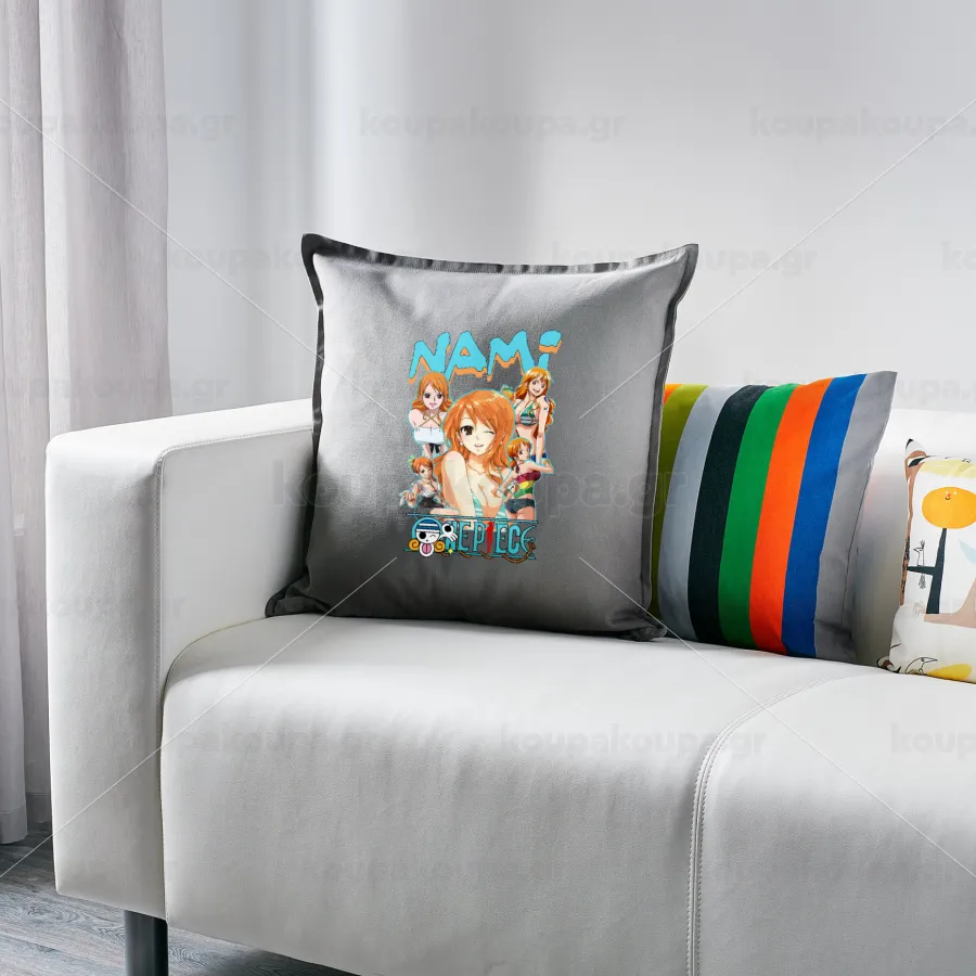 Nami One Piece, Μαξιλάρι καναπέ Γκρι 100% βαμβάκι, περιέχεται το γέμισμα (50x50cm)