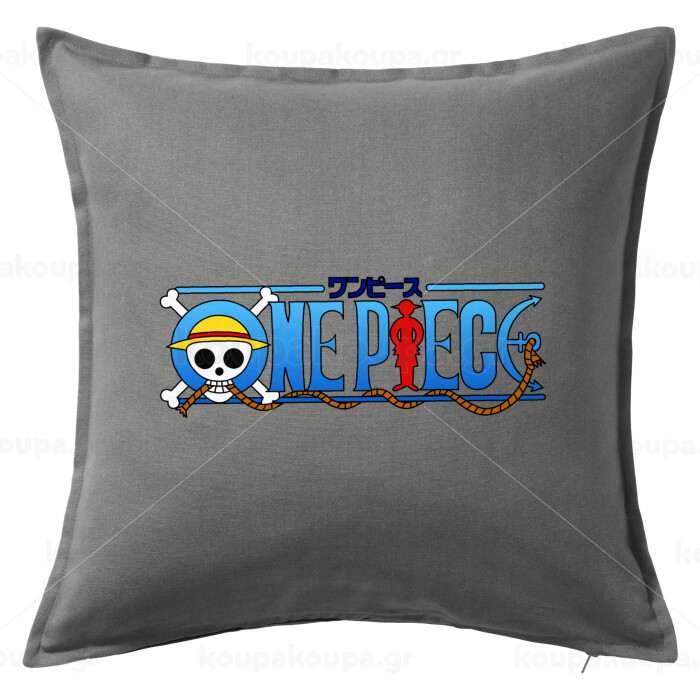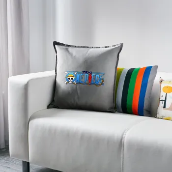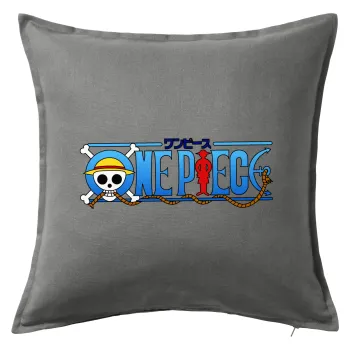 Onepiece logo, Μαξιλάρι καναπέ Γκρι 100% βαμβάκι, περιέχεται το γέμισμα (50x50cm)
