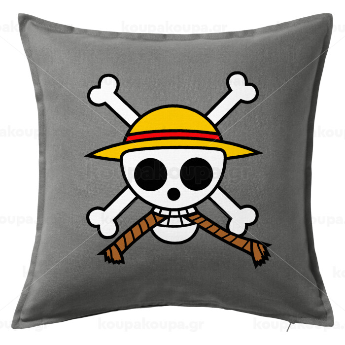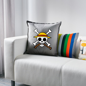 Onepiece skull, Μαξιλάρι καναπέ Γκρι 100% βαμβάκι, περιέχεται το γέμισμα (50x50cm)