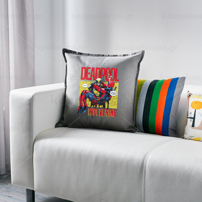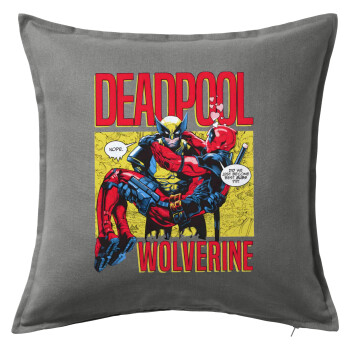 Superhero Deadpool Wolverine, Μαξιλάρι καναπέ Γκρι 100% βαμβάκι, περιέχεται το γέμισμα (50x50cm)