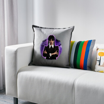 Wednesday moonlight, Μαξιλάρι καναπέ Γκρι 100% βαμβάκι, περιέχεται το γέμισμα (50x50cm)