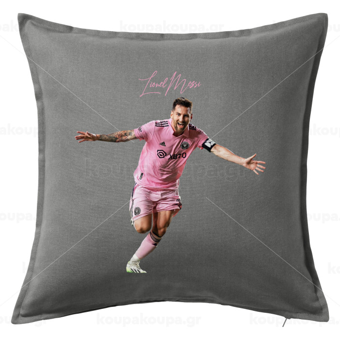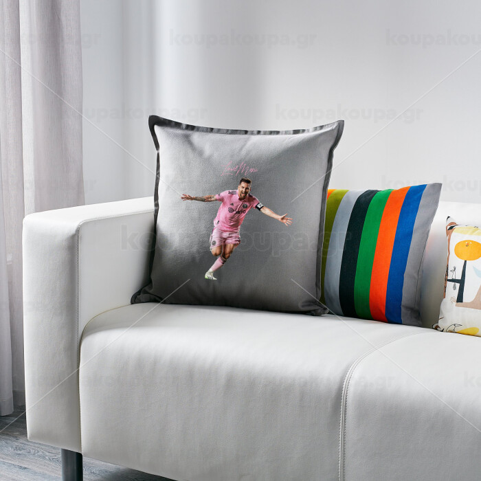 Lionel Messi inter miami jersey, Μαξιλάρι καναπέ Γκρι 100% βαμβάκι, περιέχεται το γέμισμα (50x50cm)