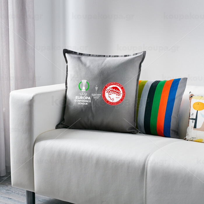 Ολυμπιακός νικητής UEFA Europa Conference League Champion 2023/24, Μαξιλάρι καναπέ Γκρι 100% βαμβάκι, περιέχεται το γέμισμα (50x50cm)