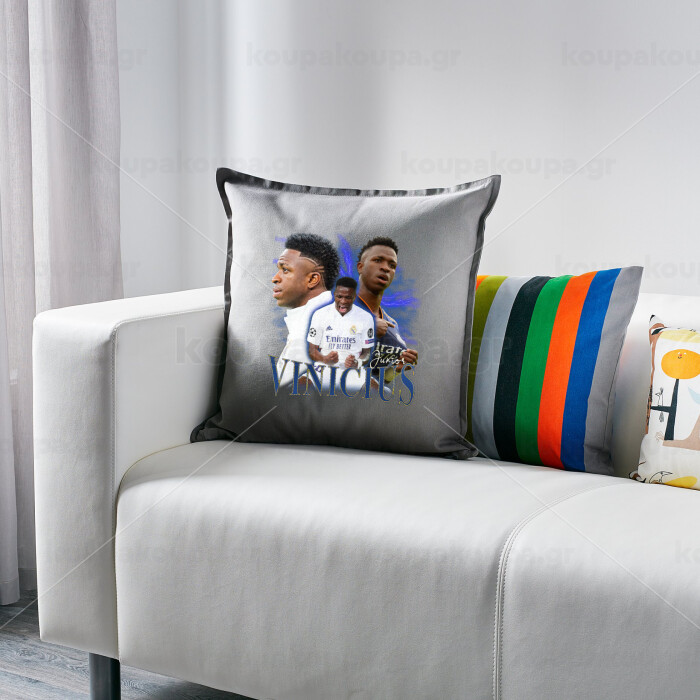 Vinicius Junior, Μαξιλάρι καναπέ Γκρι 100% βαμβάκι, περιέχεται το γέμισμα (50x50cm)