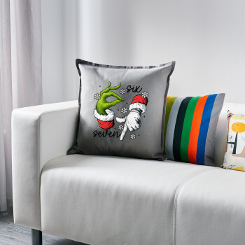 Christmas Meme SIX SEVEN (67), Μαξιλάρι καναπέ Γκρι 100% βαμβάκι, περιέχεται το γέμισμα (50x50cm)