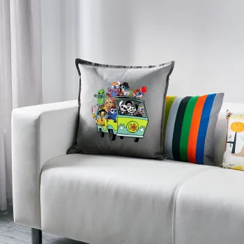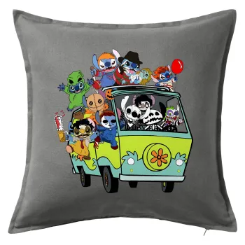 Stitch Halloween scooby car, Μαξιλάρι καναπέ Γκρι 100% βαμβάκι, περιέχεται το γέμισμα (50x50cm)