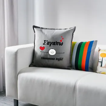 Σ΄αγαπώ τόοοοσο πολύ (Αγόρι)!!!, Μαξιλάρι καναπέ Γκρι 100% βαμβάκι, περιέχεται το γέμισμα (50x50cm)