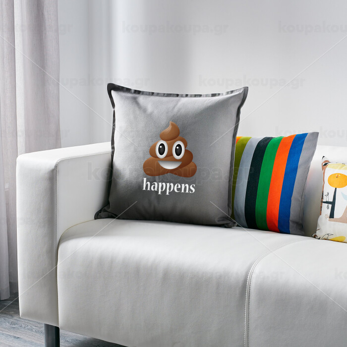 Shit Happens, Μαξιλάρι καναπέ Γκρι 100% βαμβάκι, περιέχεται το γέμισμα (50x50cm)