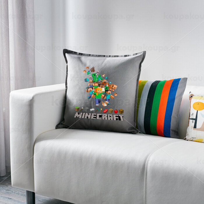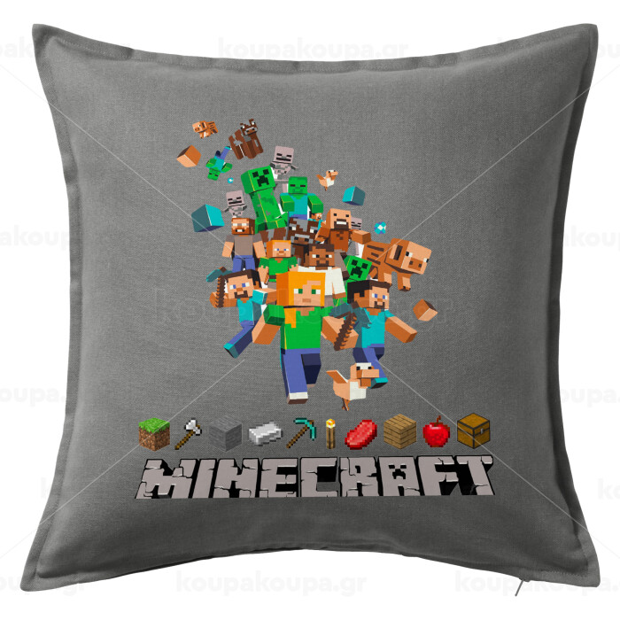 Minecraft adventure, Μαξιλάρι καναπέ Γκρι 100% βαμβάκι, περιέχεται το γέμισμα (50x50cm)