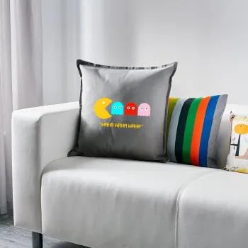 Pacman waka waka waka, Μαξιλάρι καναπέ Γκρι 100% βαμβάκι, περιέχεται το γέμισμα (50x50cm)