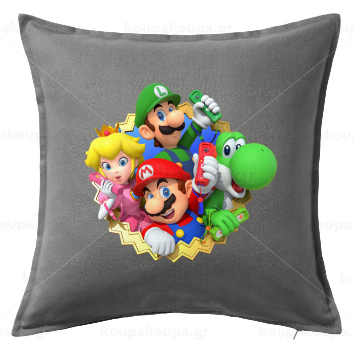 Super mario and Friends, Μαξιλάρι καναπέ Γκρι 100% βαμβάκι, περιέχεται το γέμισμα (50x50cm)