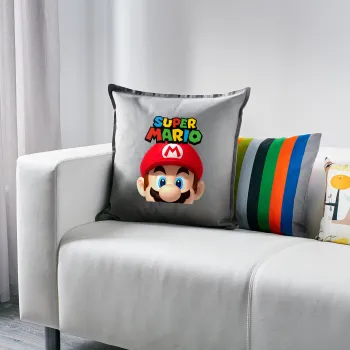 Super mario, Μαξιλάρι καναπέ Γκρι 100% βαμβάκι, περιέχεται το γέμισμα (50x50cm)