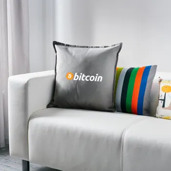 Bitcoin Crypto, Μαξιλάρι καναπέ Γκρι 100% βαμβάκι, περιέχεται το γέμισμα (50x50cm)