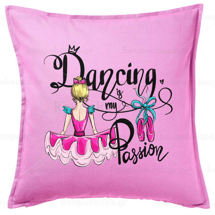 Dancing is my Passion, Μαξιλάρι καναπέ ΡΟΖ 100% βαμβάκι, περιέχεται το γέμισμα (50x50cm)