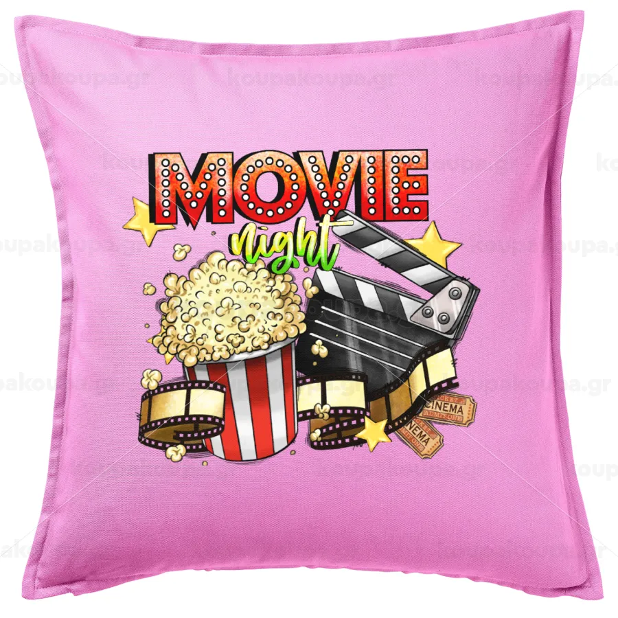 Movie night, Μαξιλάρι καναπέ ΡΟΖ 100% βαμβάκι, περιέχεται το γέμισμα (50x50cm)