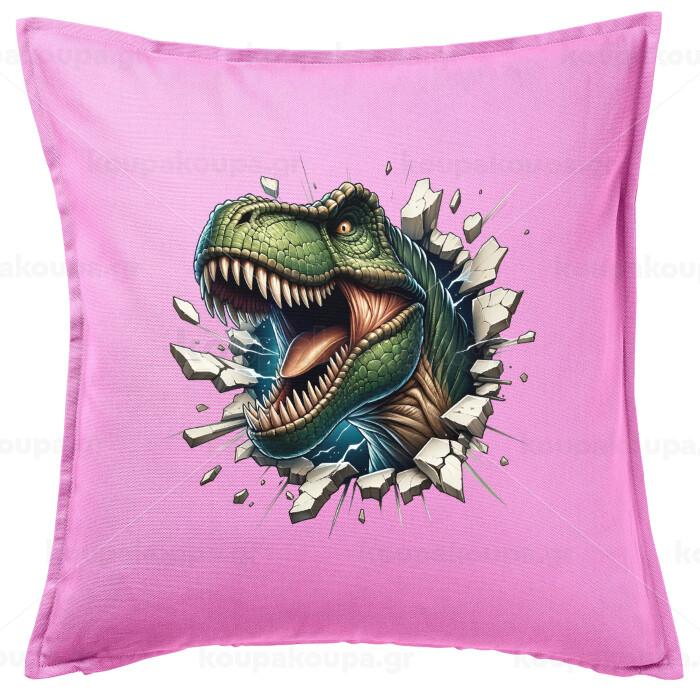 Dinosaur break wall, Μαξιλάρι καναπέ ΡΟΖ 100% βαμβάκι, περιέχεται το γέμισμα (50x50cm)