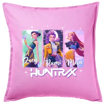 HUNTR/X K-pop girl group, Μαξιλάρι καναπέ ΡΟΖ 100% βαμβάκι, περιέχεται το γέμισμα (50x50cm)