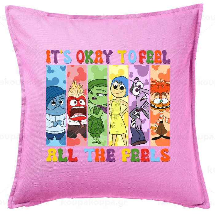 Inside Out It's Okay To Feel All The Feels , Μαξιλάρι καναπέ ΡΟΖ 100% βαμβάκι, περιέχεται το γέμισμα (50x50cm)